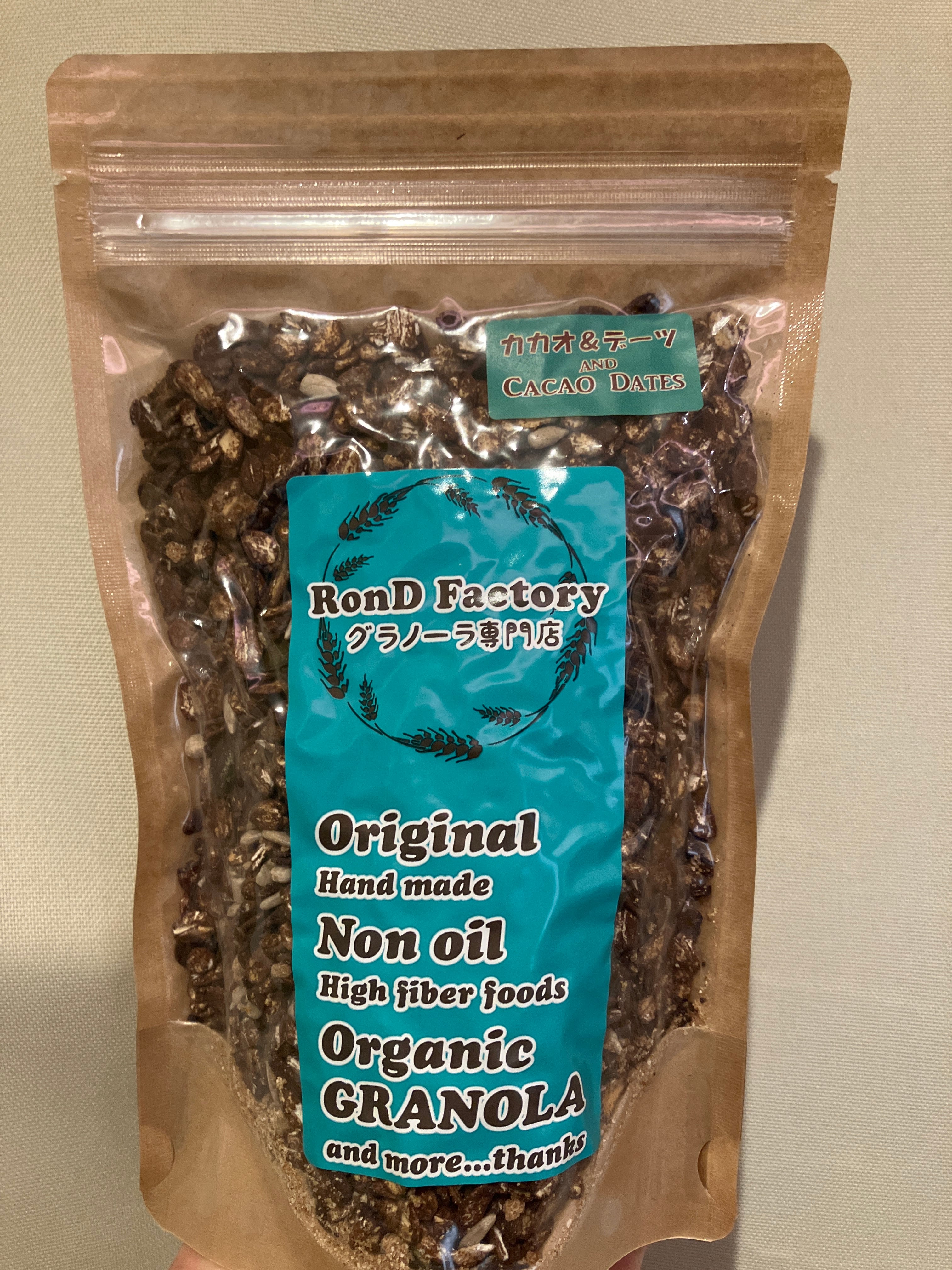 有機オートミールにたっぷり良質なカカオパウダーを重ねかけたロンドファクトリーグラノーラ専門店のノンオイル製法のグラノーラです