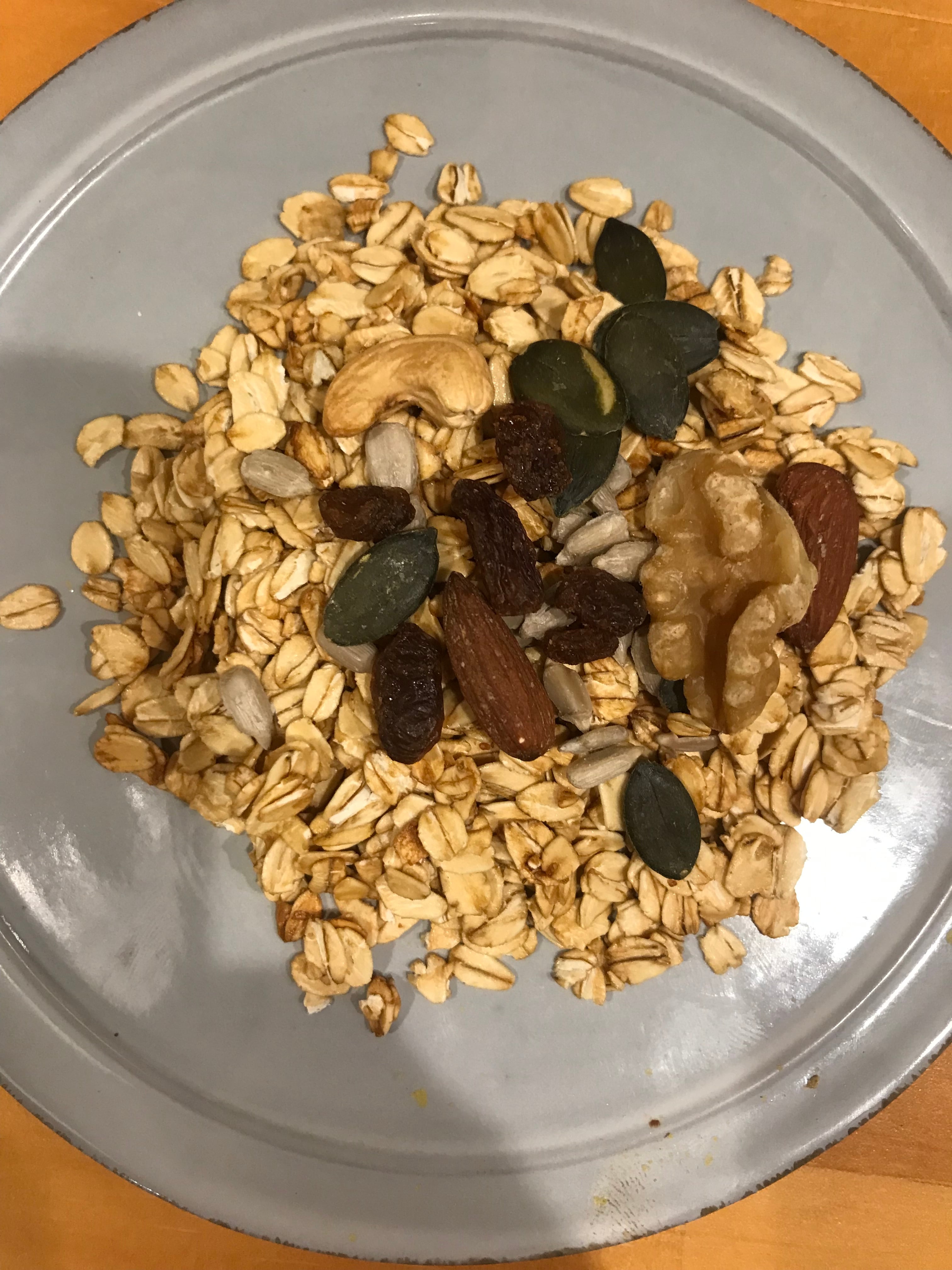 有機オーツ麦(アメリカ)、アーモンド、カシューナッツ、クルミ、有機かぼちゃの種、有機ひまわりの種、有機ゴールデンサルタナレーズン、有機アガベシロップ